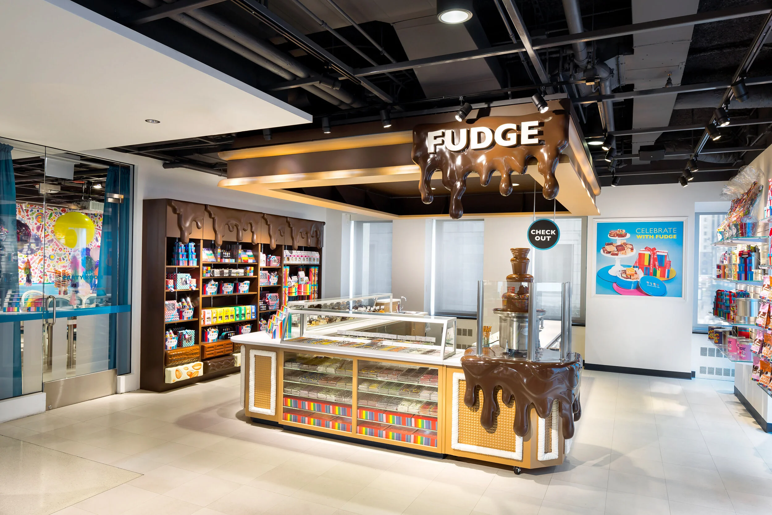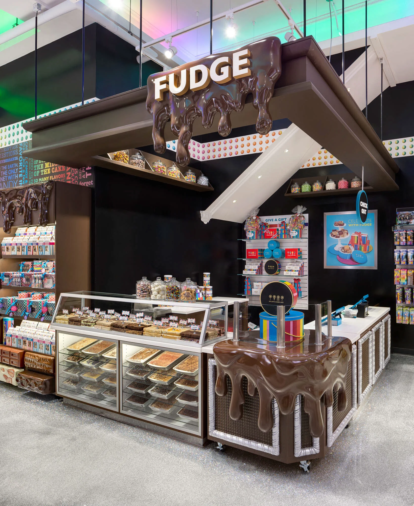 The Union Square location in New York carried a unique historical significance, having previously housed a studio owned by the iconic Andy Warhol, located directly above Dylan's new store on the street level. Drawing inspiration from this historical connection, Dylan's envisioned a distinctive ambiance for the Union Square store, setting it apart from their other Candy Bar locations. This vision entailed a darker interior, vibrant neon accents, and striking, bold lighting, creating an entirely different and memorable experience compared to their other establishments.